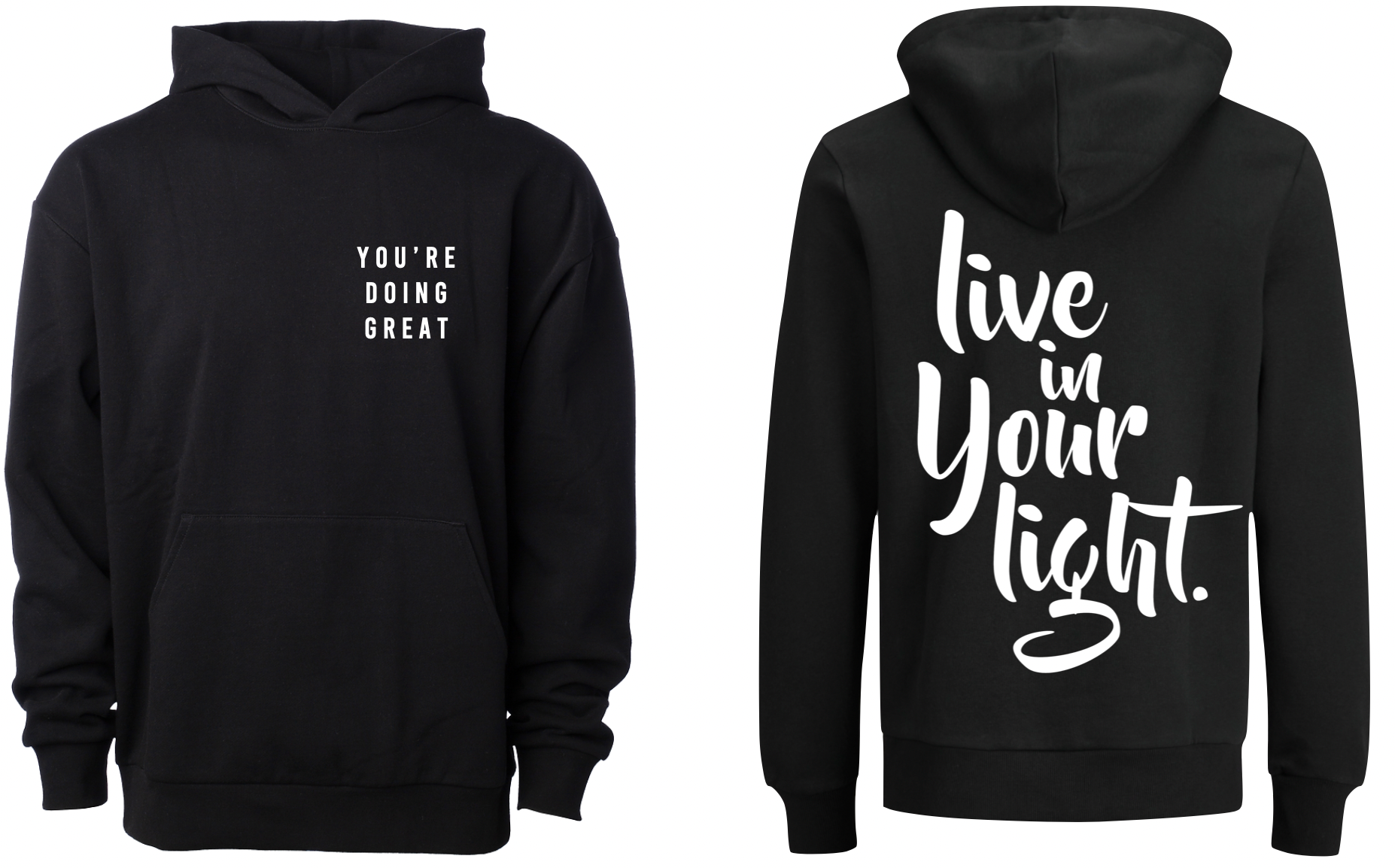 Wrap yourself in encouragement with this cozy hoodie featuring the vintage Live In Your Light logo. Perfect for those days when you need a little reminder that you're on the right track. The soft fabric and relaxed fit make it ideal for lounging, running errands, or simply embracing your journey.